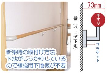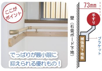 補強用下地板は手すりを安全に利用するために必要なものですが、設置をすることで、壁から手すりまでの「でっぱり」が大きくなってしまいます。