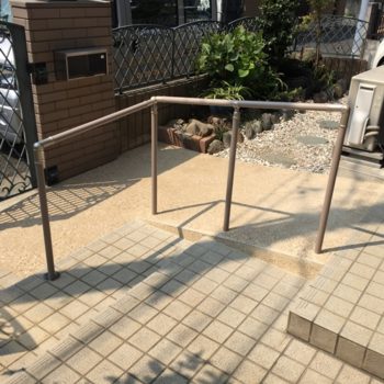 支柱がしっかり固定したところで手すりを取付け完成です。
