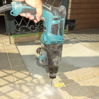 支柱を立てる箇所へ、ハンマードリルで下穴をあける。