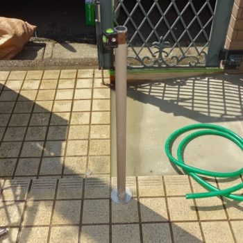 水平器を利用して支柱を埋め込みカバーを取付けます。