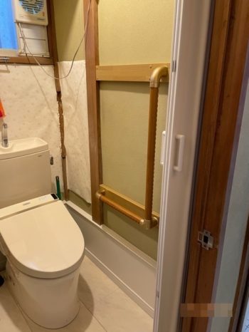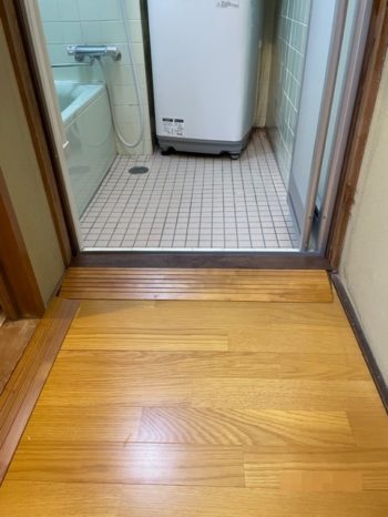 今回は浴室開き戸から折戸へ変更、手すりの取付、段差解消スロープの取付を
