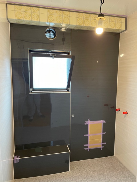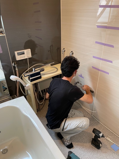 浴槽設置施工中です。