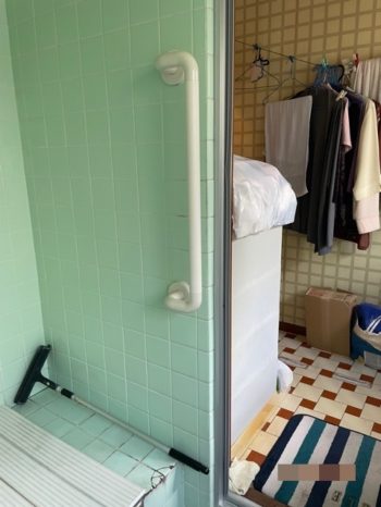 今回は玄関踏み台取付、廊下、浴室、外部に手すりの取付をおこないました。