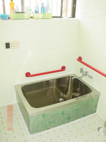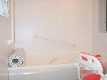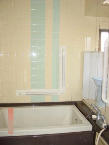 改善したい動作は浴槽内での立ち座りです。壁面タイル仕様のユニットバスなのでアルミ補強板を設置