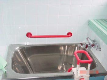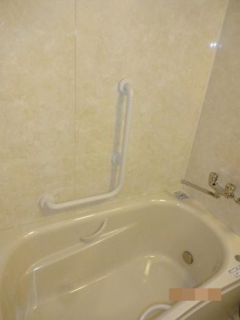 改善したい動作は浴槽内での立ち座りです 壁面化粧鋼板仕様のユニットバスなので取り付けられる手すりは豊富