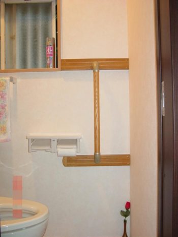 I型タテ手すりは立ち座り用、I型ヨコ手すりはトイレの出入り用です。