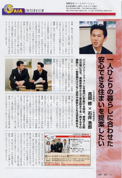 資料請求 お問い合わせ お役立ち資料請求 電話で相談 0120-79-2855 【受付】8:30~18:00【定休日】日曜日 電話で見積り・相談 HOMEメディア掲載情報月刊ガイア2003年8月号/メディア大阪発行 月刊ガイア2003年8月号/メディア大阪発行 投稿日:2003年8月1日 カテゴリー: 近鉄バッファローズ時代には不動の四番として活躍されていた現野球解説者の石井浩郎さんが取材に来ました。当社の取り組みなどを掲載されました!! メディア掲載情報一覧はこちら ハートステーションについて 会社案内ご挨拶会社概要企業理念 はじめにお読みください 住宅改修事例 住宅改修事例一覧 介護保険適用 住宅改修 障がい者自立支援 住宅改修 外構 玄関 廊下 階段 浴室 洗面台 トイレ 居室 キッチン 外壁・屋根 ケアマネージャー様の声 ケアマネージャー様の声一覧 お役立ち情報 住宅改修初めの一歩 練馬 住宅改修最前線!ハートステーションdiary 保険・制度の申請のポイント 練馬区の介護保険適用の住宅改修を利用する方へ 新座市の介護保険適用の住宅改修を利用する方へ 東久留米市の介護保険適用の住宅改修を利用する方へ 西東京市の介護保険適用の住宅改修を利用する方へ 清瀬市の介護保険適用の住宅改修を利用する方へ 住宅改修のポイント 外部の住宅改修ポイント トイレの住宅改修ポイント 浴室の住宅改修ポイント 階段の住宅改修ポイント 廊下の住宅改修ポイント 玄関の住宅改修ポイント はじめてでも失敗しない手すりの選び方 外部アプローチ手すりの選び方 木製手すりの選び方 浴室手すりの選び方 メディア掲載情報 ハートフルサービス 住設安心サポート リフォームの流れ よくある質問 住宅省エネ2026キャンペーン 先進的窓リノベ2026事業 みらいエコ住宅2026事業 給湯省エネ2026事業 個人情報の取り扱いについて お問い合わせ お問い合わせ 資料請求 住宅改修のポイント 玄関、廊下、階段など、施工部位別に住宅改修のポイントを整理しました。 失敗しない手すりの選び方 特にご質問いただく機会が多い、手すりに関してポイントをまとめました。 メディア掲載情報 ハートステーションの取り組みがメディアで取り上げられました。 保険・制度の申請のポイント 介護保険や制度の手続き・申請に関して、わかりやすくまとめました。