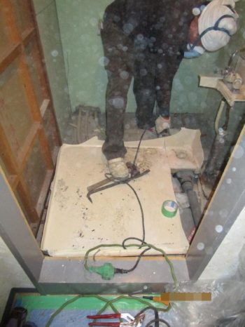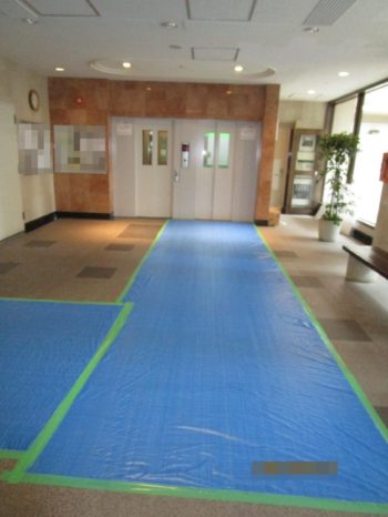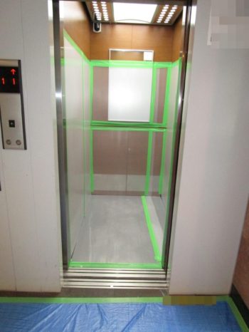 エレベーターの中もキズ防止の為プラベニヤを張ります