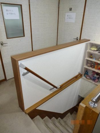 手すりが付いても、今まで通り階段通路幅を確保している。介助スペースもバッチリ確保!