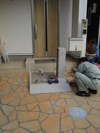 段差昇降機の組立をしています。