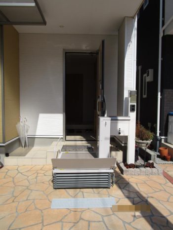 段差昇降機を使う事で段差が解消して、外出の際のご家族の介助の負担の軽減、安全で安心して外出が出来るようになりました。