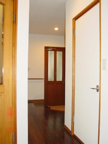 廊下の床もウォールナットの無垢材に張替えました。とても重厚感があって良い感じになりました。