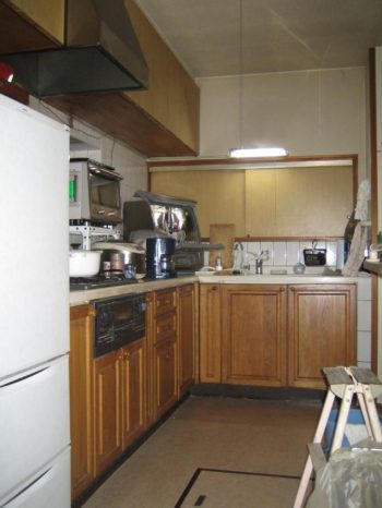 既存キッチンです。もうすこし使いやすいキッチンにしたいです。