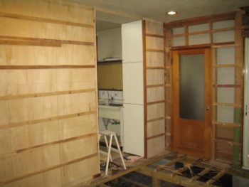 | お客様のご要望 | ①キッチンの床が沈みギシギシ鳴る、クロスが所々汚れたり剥がれるなど、 家の老朽化が心配。 ②キッチン家電などを使いやすく配置したい。 ③リフォームに伴い、防犯についても考えていきたい。 ④自宅に自然素材を活かしたアットホームなギャラリーを作りたい。 |