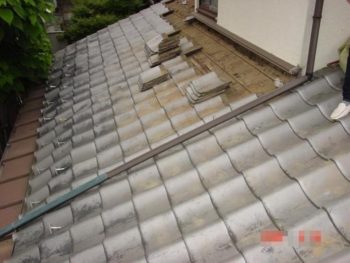 屋根下の部材が瓦の重さと経年劣化によってたわんでいる