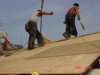 下地合板張り後、ルーフィング(防水シート)を敷き込みます