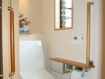 | ご提案内容 | 2階の床の間にトイレを新設することをご提案。これなら増築する必要もなく、最短の工事で済みます。 立ち座りが楽にできるよう、スペースを広く取れるような便器と洗面器を選びました。 |